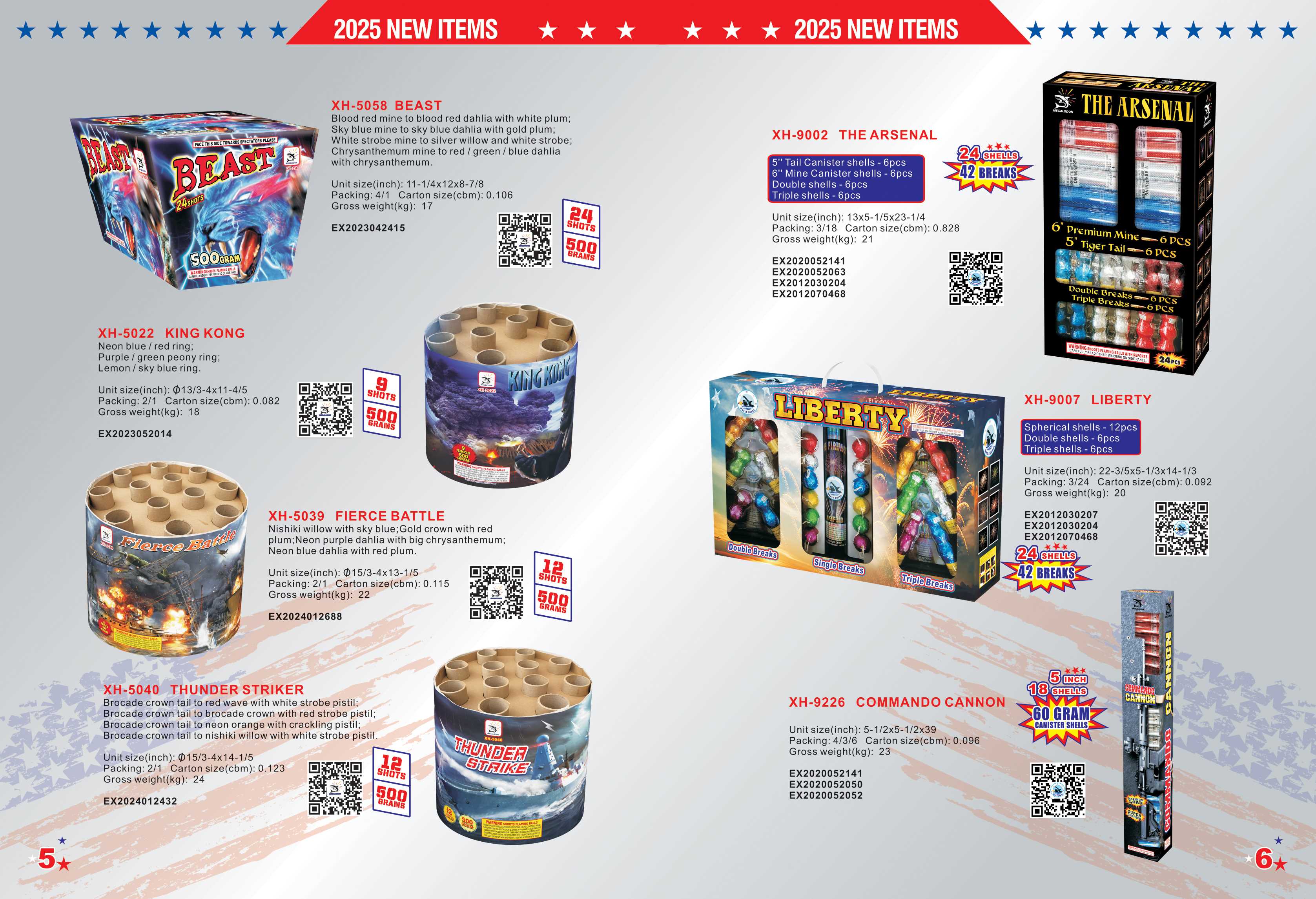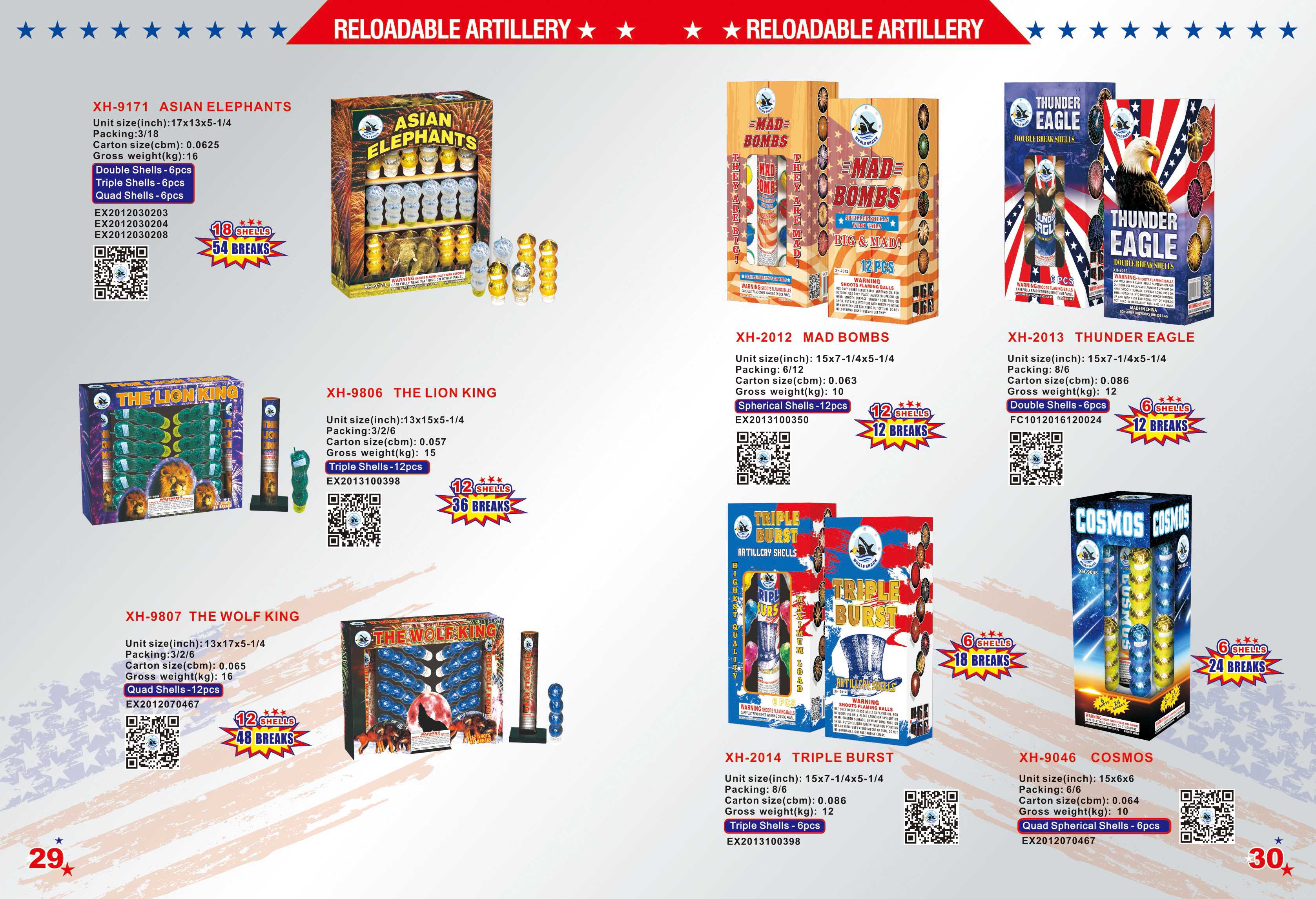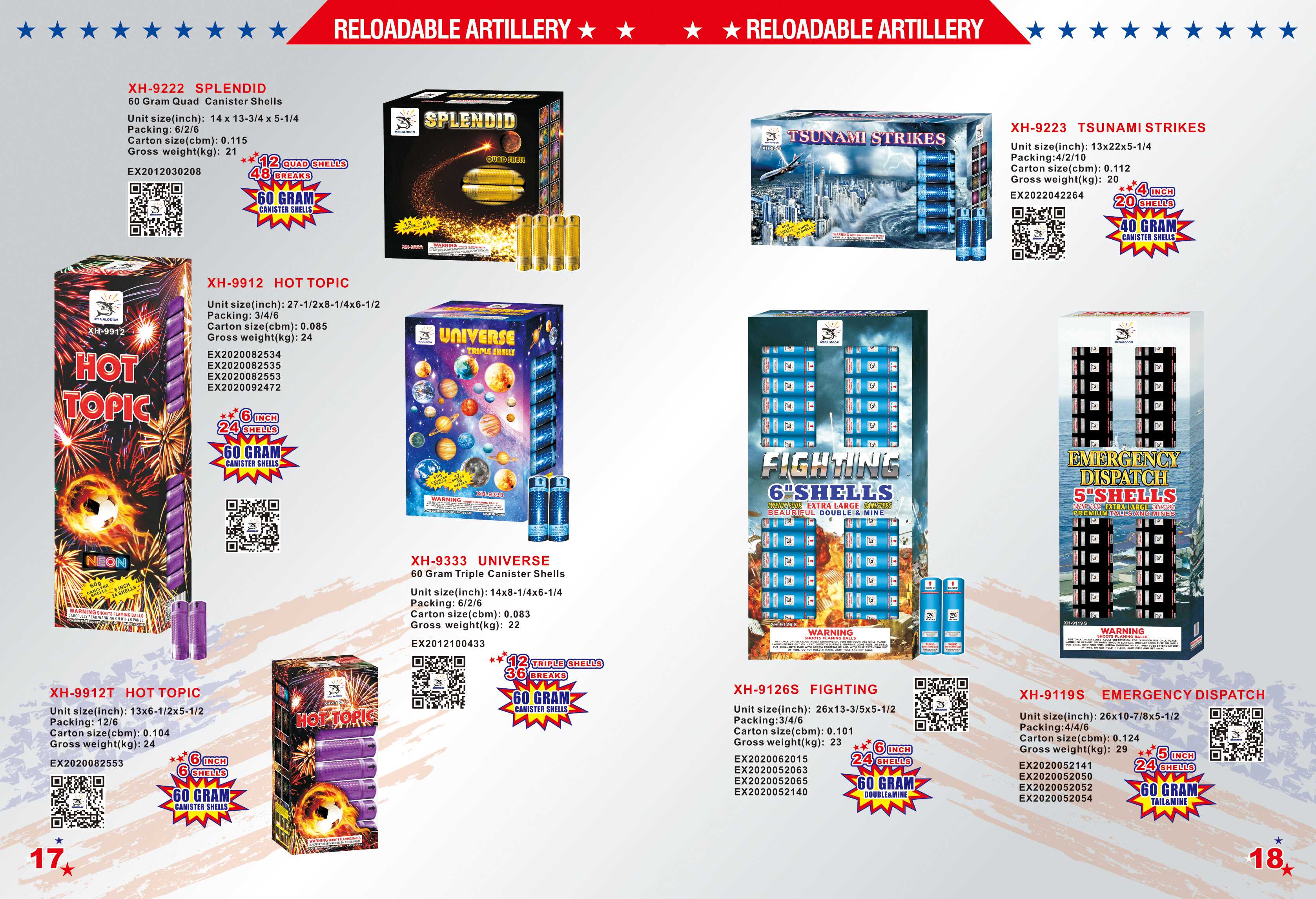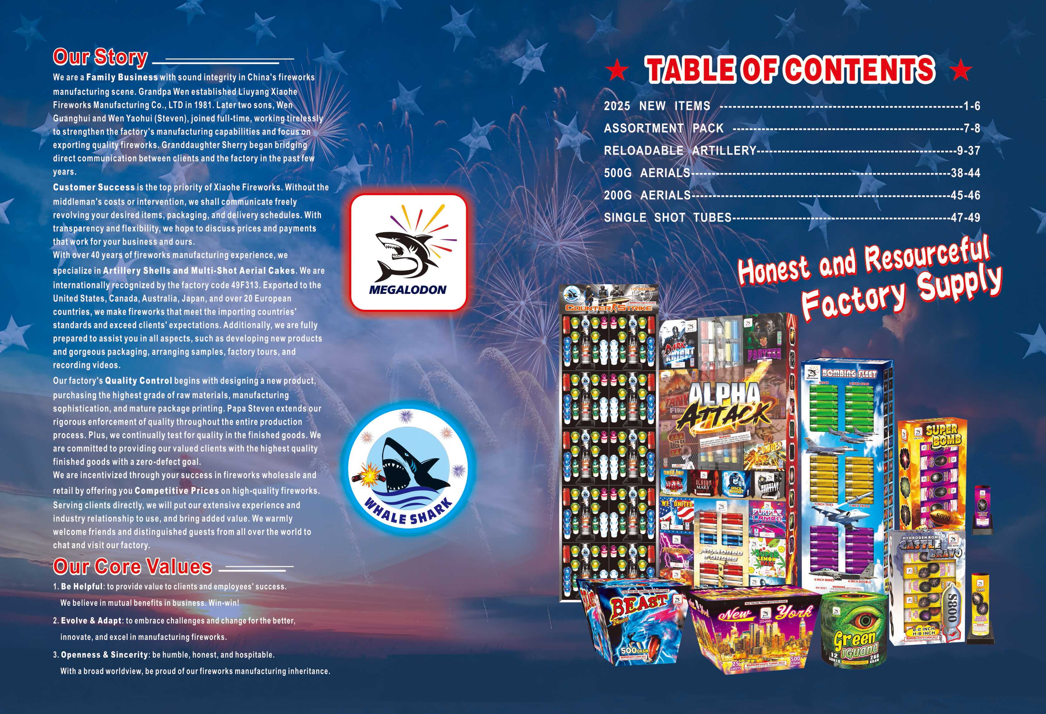 With over 40 years of fireworks manufacturing experience, we specialize in Artillery Shells and Multi-Shot Aerial Cakes. We are internationally recognized by the factory code 49F313. Exported to the United States, Canada, Australia, Japan, and over 20 European countries, we make fireworks that meet the importing countries' standards and exceed clients’ expectations. Additionally, we are fully prepared to assist you in all aspects, such as developing new products and gorgeous packaging, arranging samples, factory tours, and recording videos.